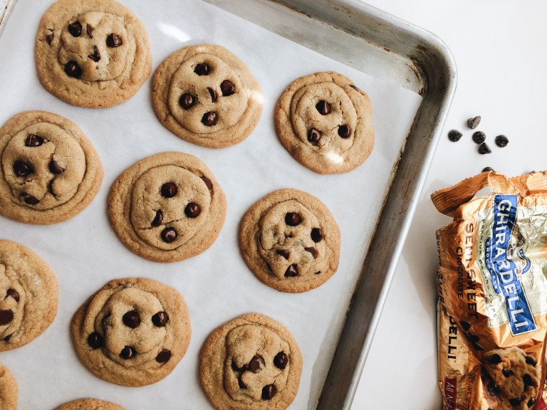 I, along with half of America, am having a really bad week. Actually, I’m having a really bad year. To combat the post-election blues and the everyday-blues, I’ve been shoveling assorted junk into my mouth and slowly gaining weight that I swear I’m going to lose. Going along with this week’s themes of regret, disappointment, and remorse, I almost ruined a relatively simple chocolate chip cookie recipe. They ended up being perfectly chewy in the middle and crispy around the edges though.