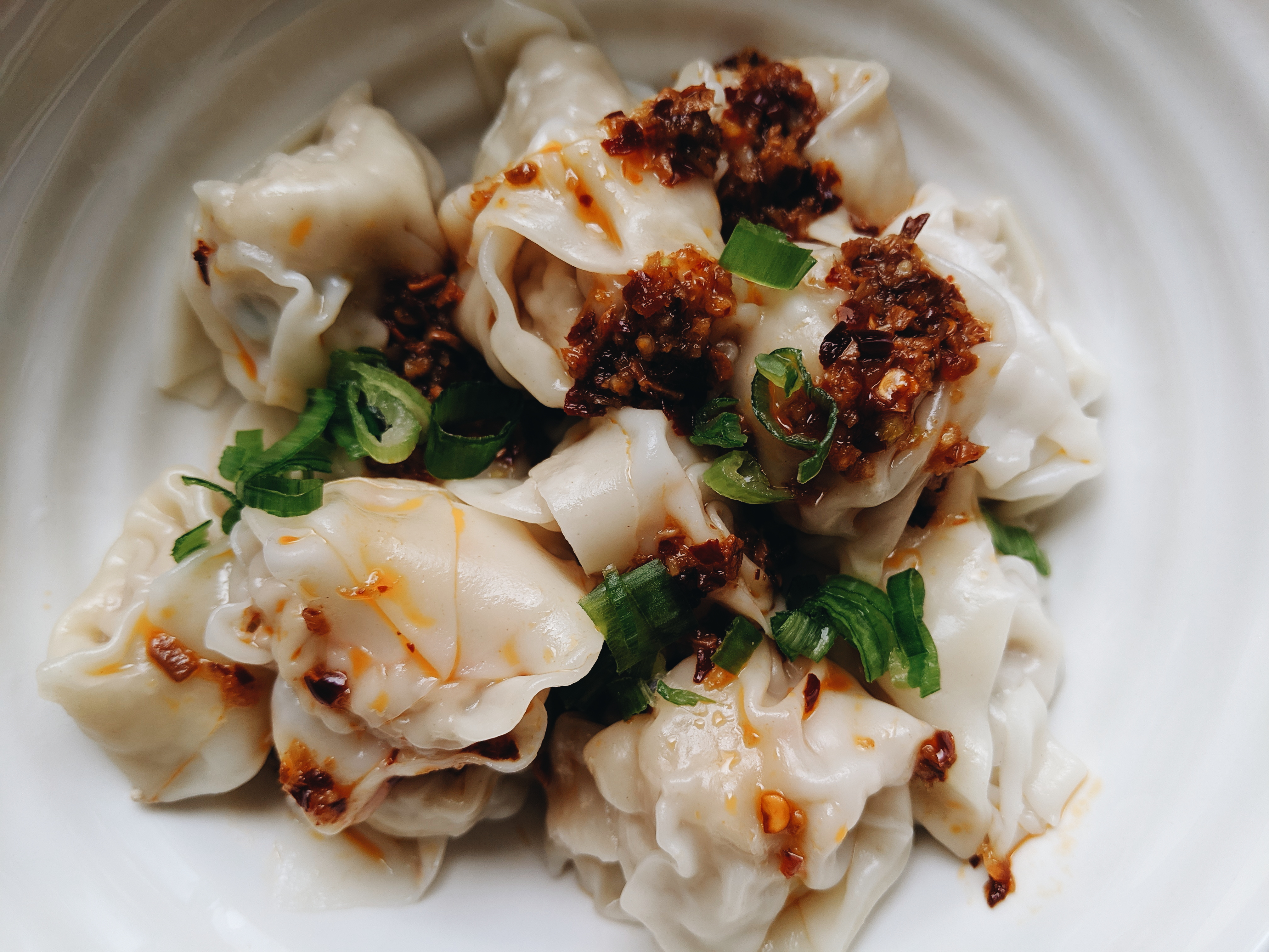 - Carefully add the wontons into a pot of boiling water (work in batches) and let them cook for about 5 minutes until fully cooked.