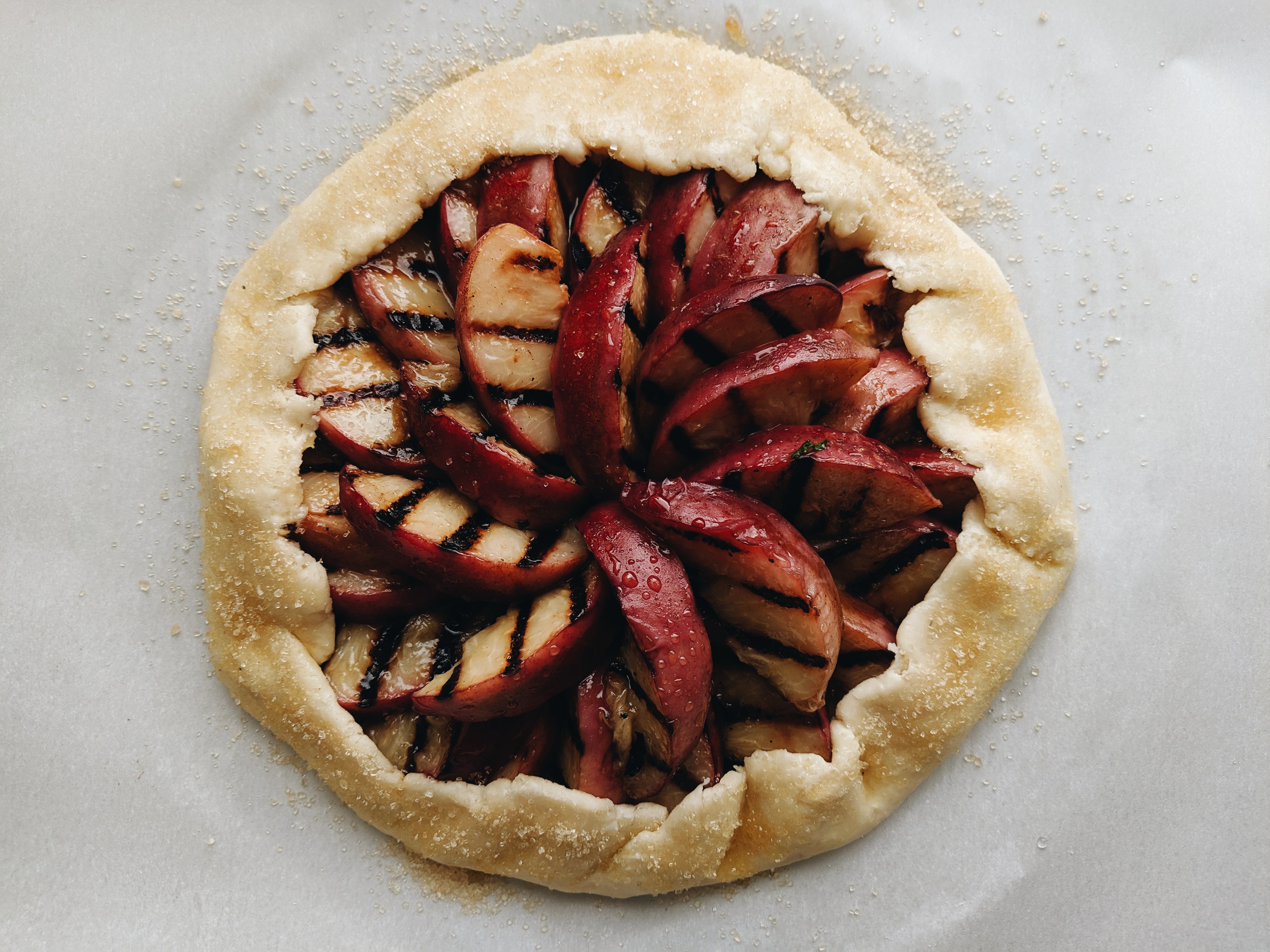 - Wash and halve the peaches, then cut them into large slices. Grill the on an oiled grill pan, medium heat, for 2 minutes on each side. Let cool.