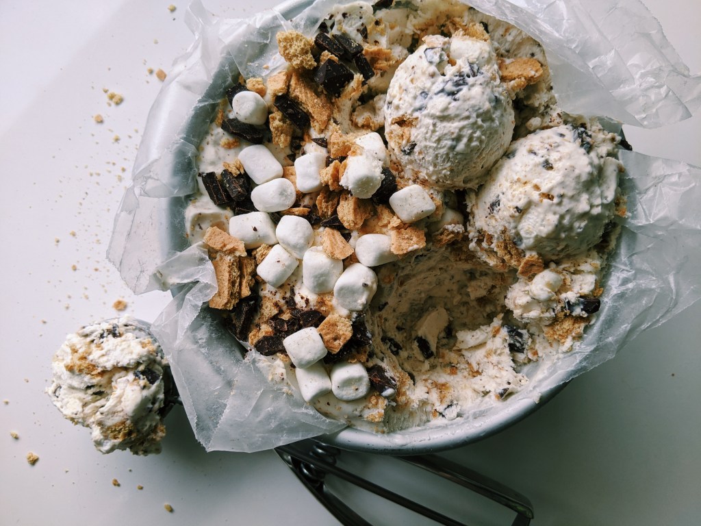 - Fold in the toppings. Pour into vessel of choice. Cover and freeze for about at least 8 hours until solid.